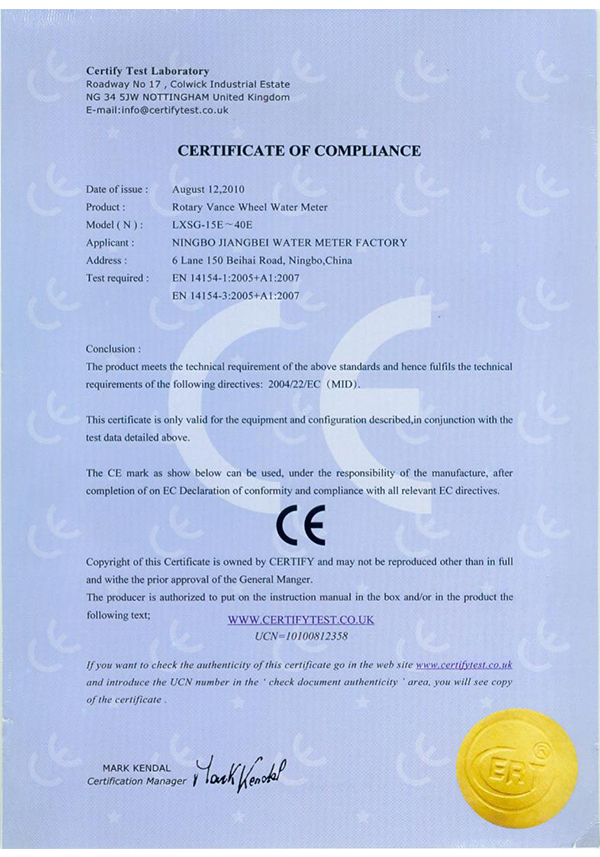 全國水表產(chǎn)品質(zhì)量連續(xù)穩(wěn)定合格企業(yè)